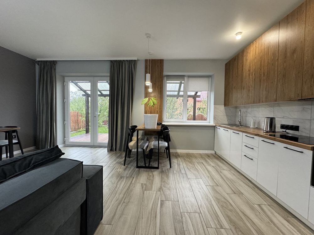 2х поверховий будинок з стильною кухнею-студією ,укомплектований технікою та меблями,з виходом на терасу,де ви можете відпочивати з друзями!
