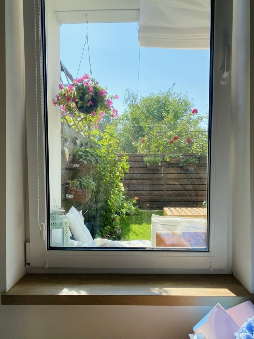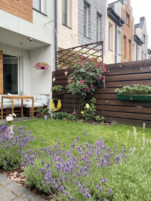 Дуже затишний дворик з квітниками і травами, зручним диванчиком для відпочинку.