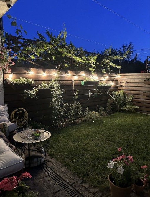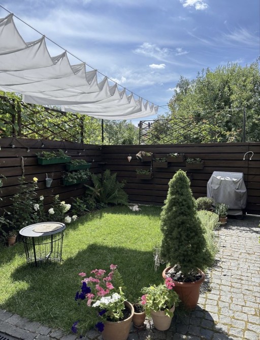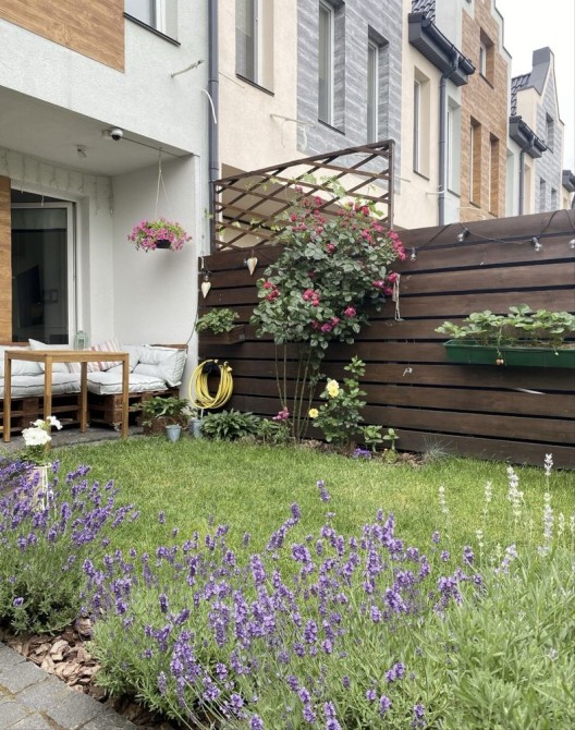 Дуже затишний дворик з квітниками і травами, зручним диванчиком для відпочинку.