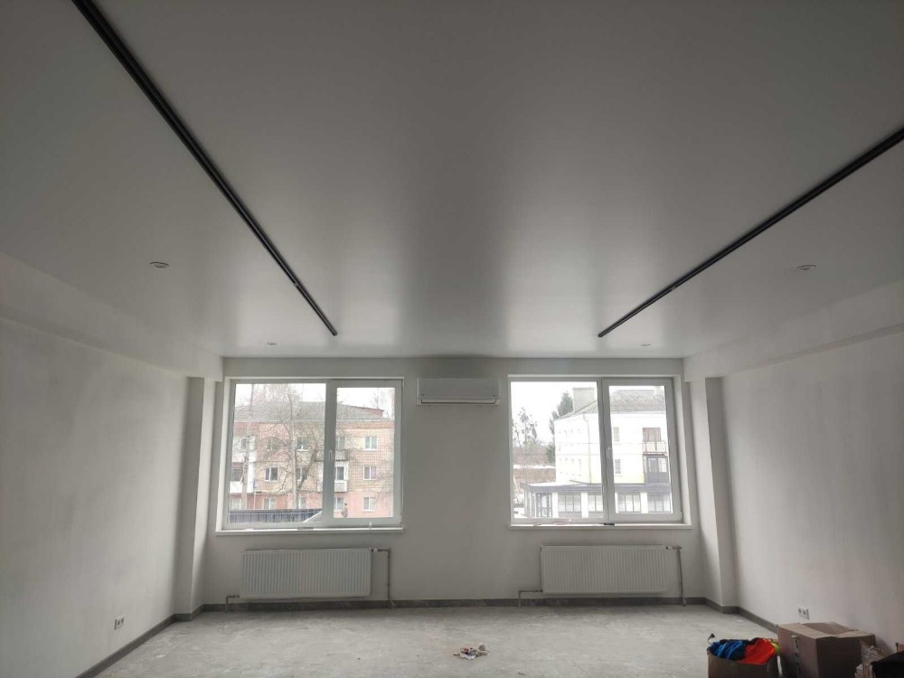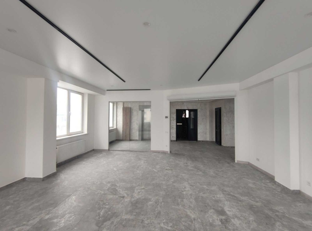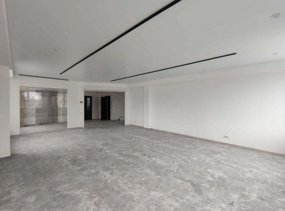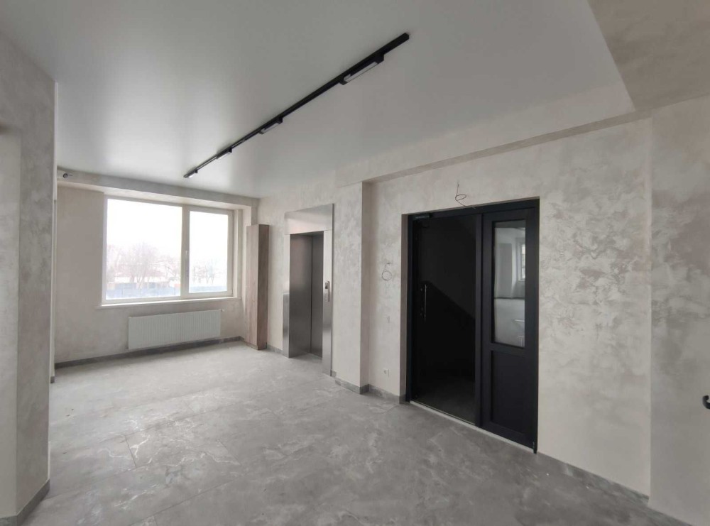 Щойно завершений ремонт: трендова підлога під мармур, трекове освітлення.