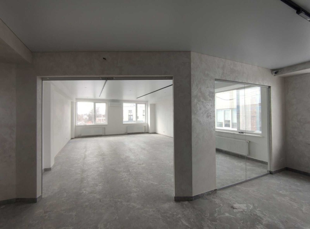 Оптимально простора площа- 46, 47 м2, панорамні скляні вітрини, захисні ролети.