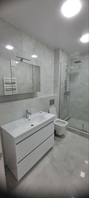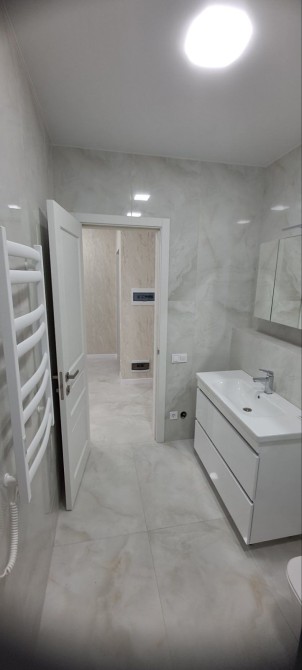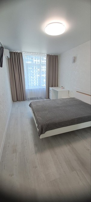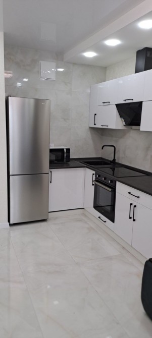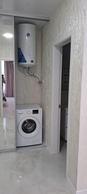 Квартира готова до проживання та укомплектована всім необхідним: кухня-вітальня з холодильником, диваном, столом, стільцями, варильною поверхнею, духовкою, мікрохвильовкою, чайником і Smart TV; у кімнаті — зручне ліжко, Smart TV, письмовий стіл, шафа та два кондиціонери; пральна машина і бойлер на 80 л. Підключений інтернет, встановлені лічильники на тепло, воду та електроенергію.
