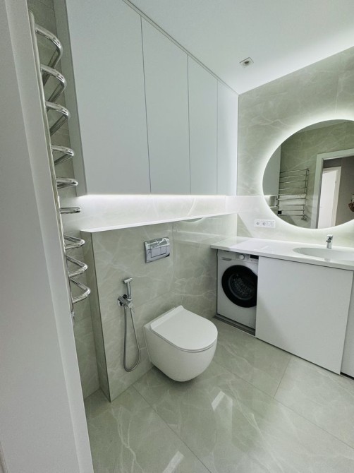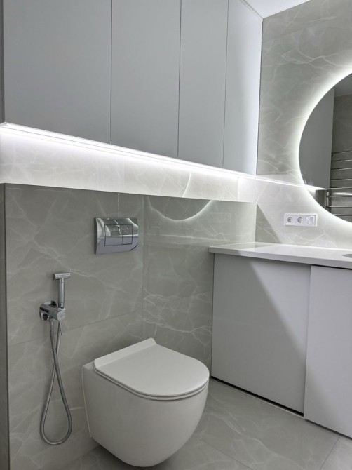 Втілені сучасні дизайнерські рішення, декоративна штукатурка, велике дзеркало в коридорі,сучасне освітлення та безліч підсвіток; якісна сантехніка, гігієнічний душ;