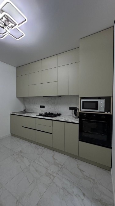 - вся необхідна комплектація по меблях та техніці: пральна машина, газова варильна поверхня, духова шафа, мікрохвильова піч, електрочайник, витяжка, холодильник, телевізор
