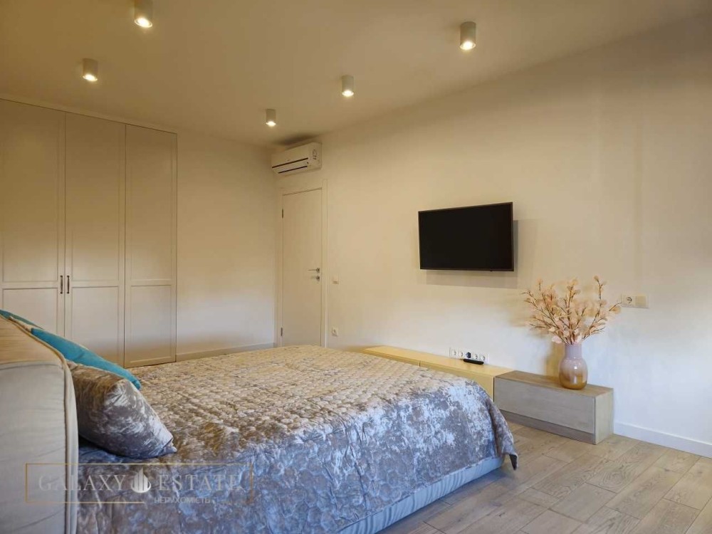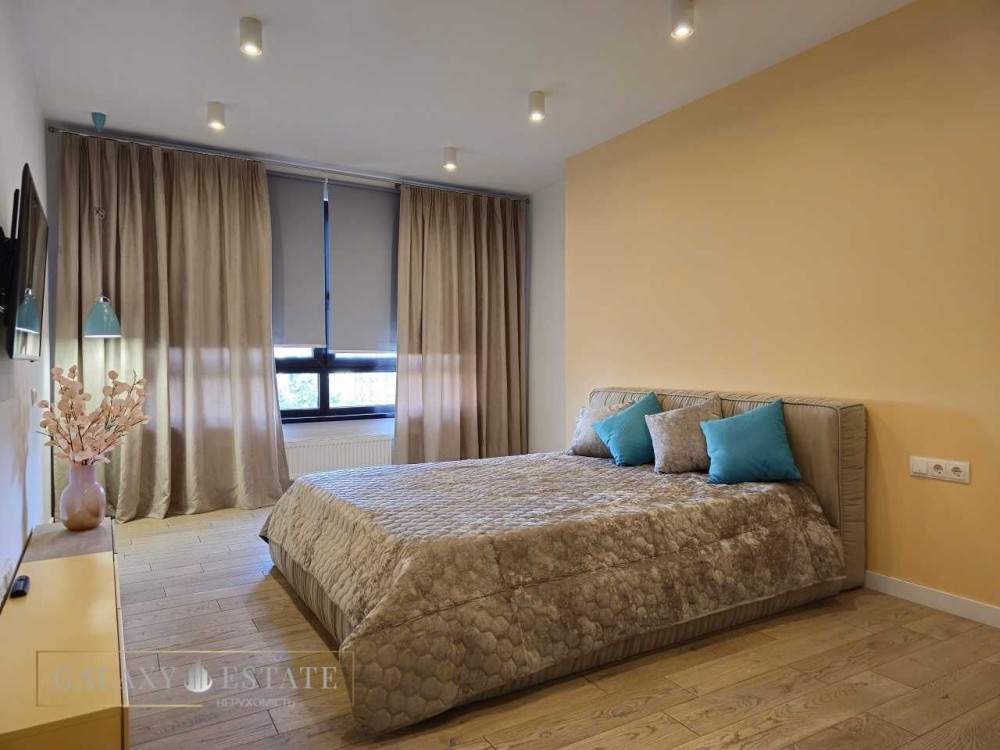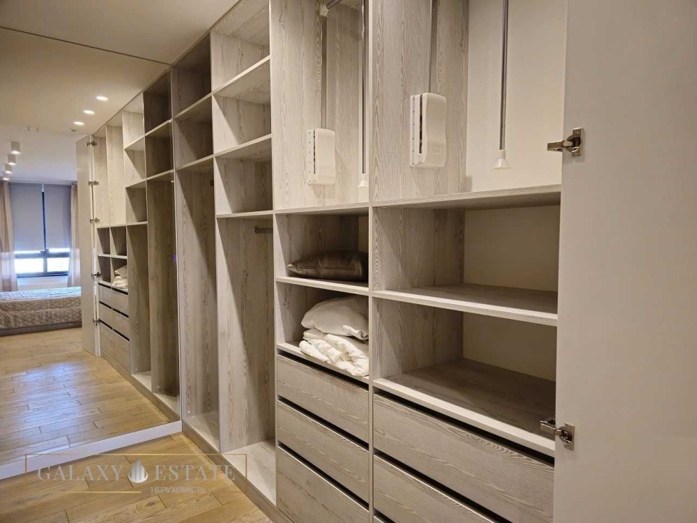 Квартира повністю мебльована меблями: вбудована кухня, комфортний розкладний диван, двоспальне ліжко з ортопедичним матрацом, для зберігання речей є місткі шафи та дві великі гардеробні кімнати. Комфорт проживання вам забезпечить підігрів підлоги у с/в, кондиціонери у всіх кімнатах. Є посудомийна машина, холодильник, пральна машина, плазмові телевізори.