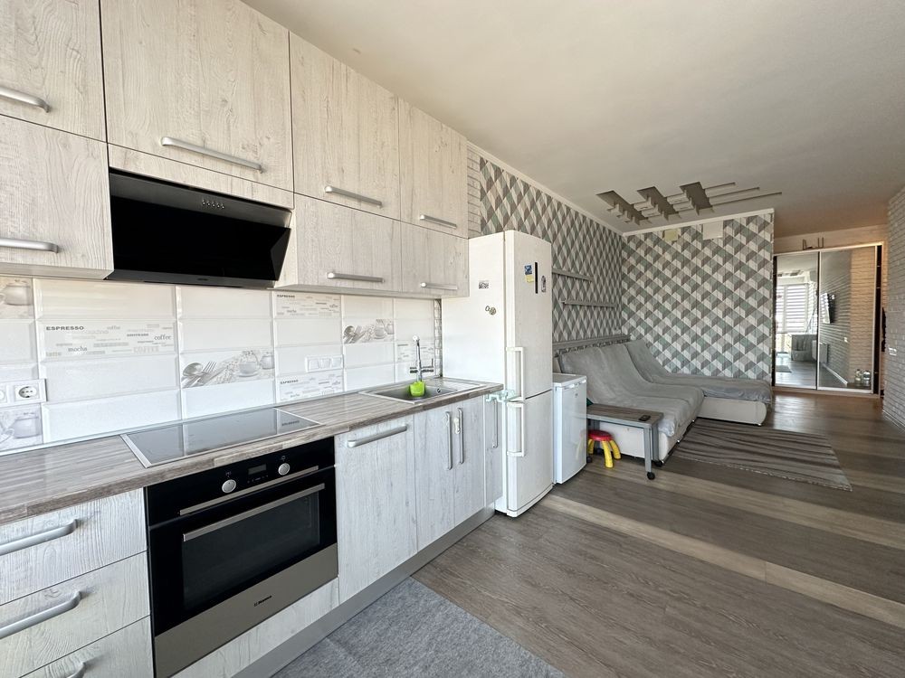 - простора кухня-вітальня 25 м² з великим 3-метровим розкладним диваном — ідеально для сімейного відпочинку;
