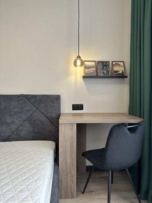 Дизайнерський ремонт, сучасні меблі (розкладний диванчик, три шафи для зберігання). Велика спальня з двоспальним ліжком з ортопедичним матрасом, стіл та велика шафа. Вся побутова техніка: витяжка, варильна панель (індукційна), духова шафа, мікрохвильова піч, посудомийна машина, холодильник, електрочайник, пилосос, телевізор, кондціонер, пральна-сушильна машина, бойлер. Інтернет, Wi-Fi. Кухня-вітальня, окремо спальня. Квартира світла, стильна, забезпечена резервним живленням від портативної зарядної станції на 2кВт. Ecoflow. Генератор на ліфти. Під час відключень світла працює ліфт і водопостачання. Ванна кімната. Новий будинок, консьєрж. Добре розвинена інфраструктура. Ідеально для проживання одного-двох людей. Можлива оренда з маленьким песиком