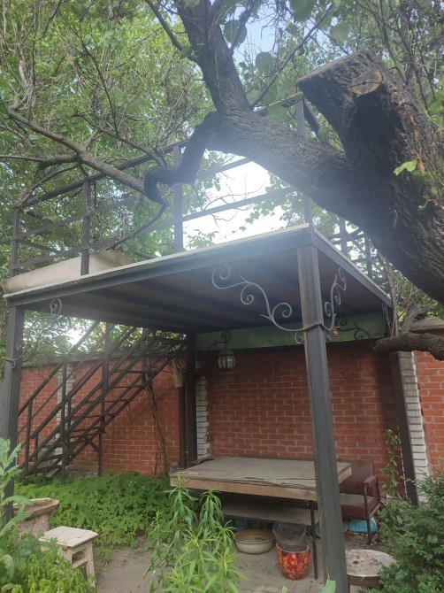 Альтанка має два поверхи (1 поверх мангальна зона, 2 поверх дитяча ігрова зона (будинок на дереві).