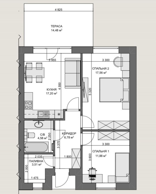 • Загальна площа 62 м2