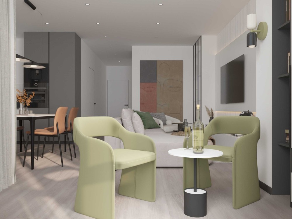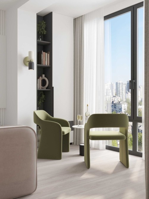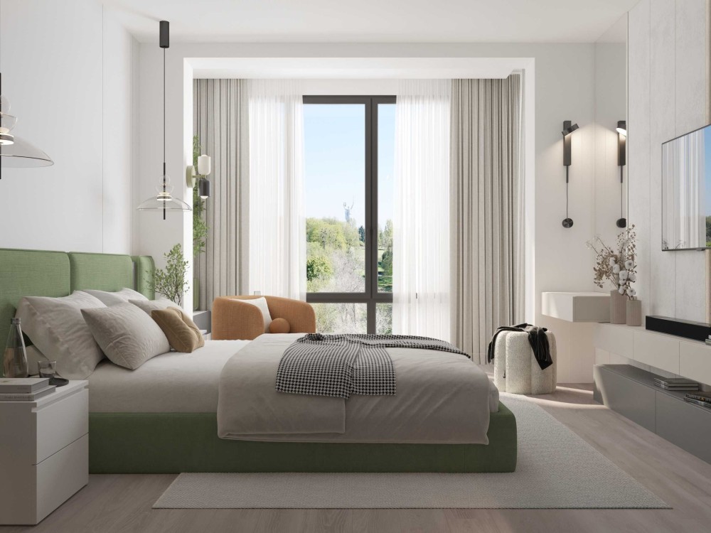 • Лоджія 1 (7,4 м²): панорамний краєвид на Ботанічний сад та монумент Батьківщина-Мати