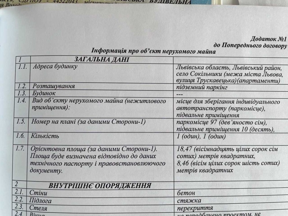 Площа: паркомісце 18,47м.кв. + кладова 8,46м.кв.