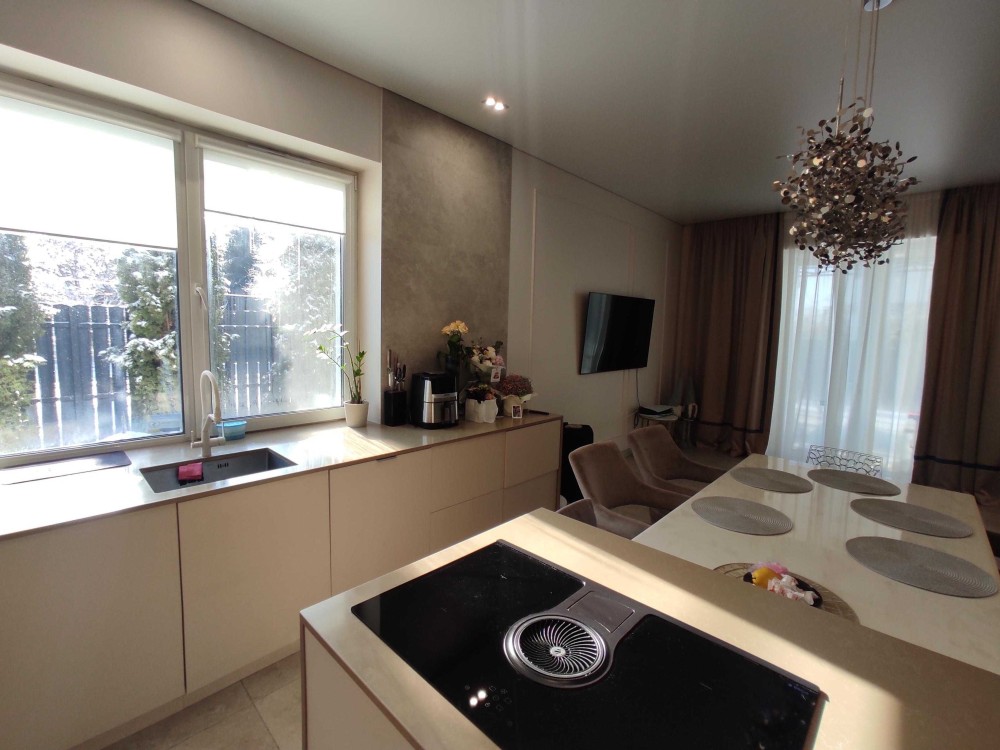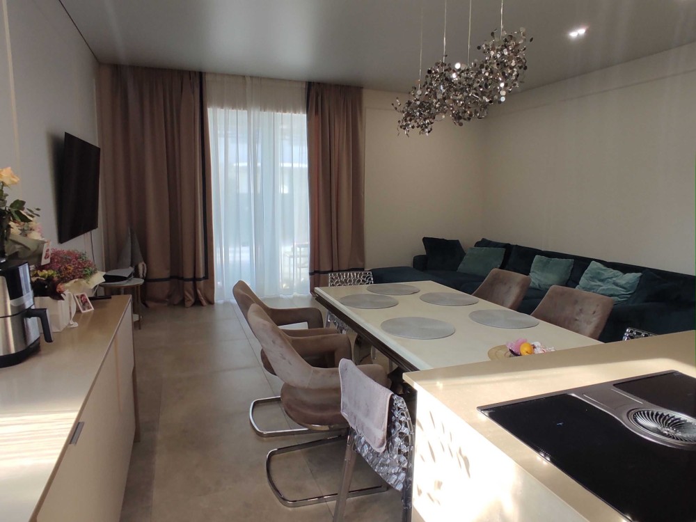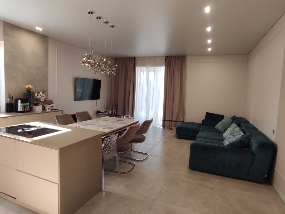 Кухня-гостинная с выходом на террасу, 4 комнаты, 2 санузла, гардероб.