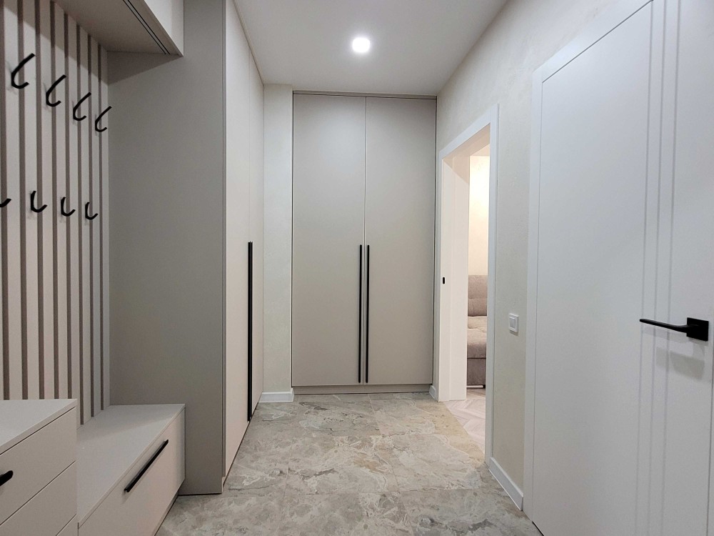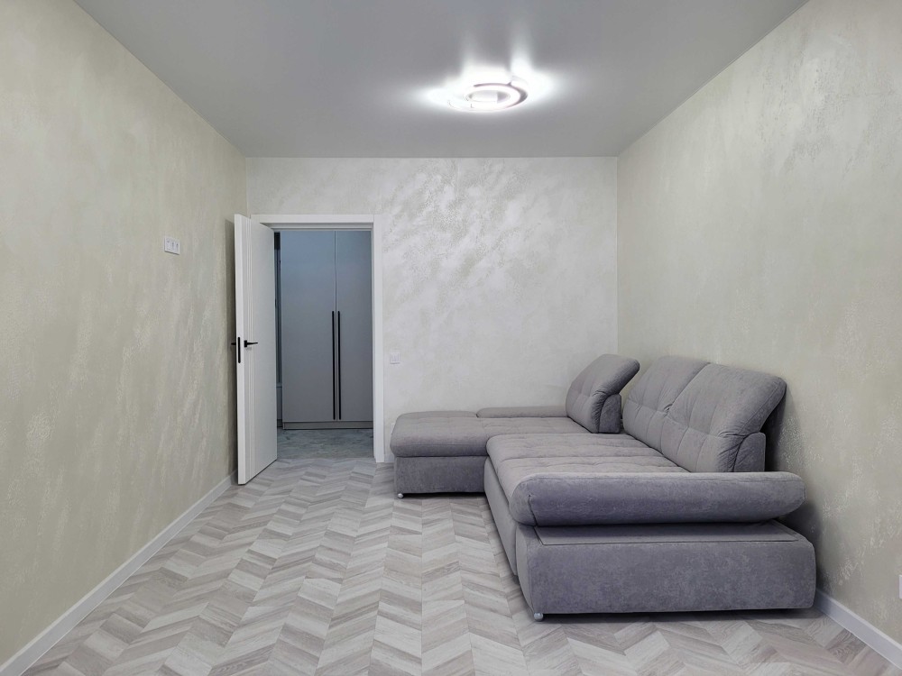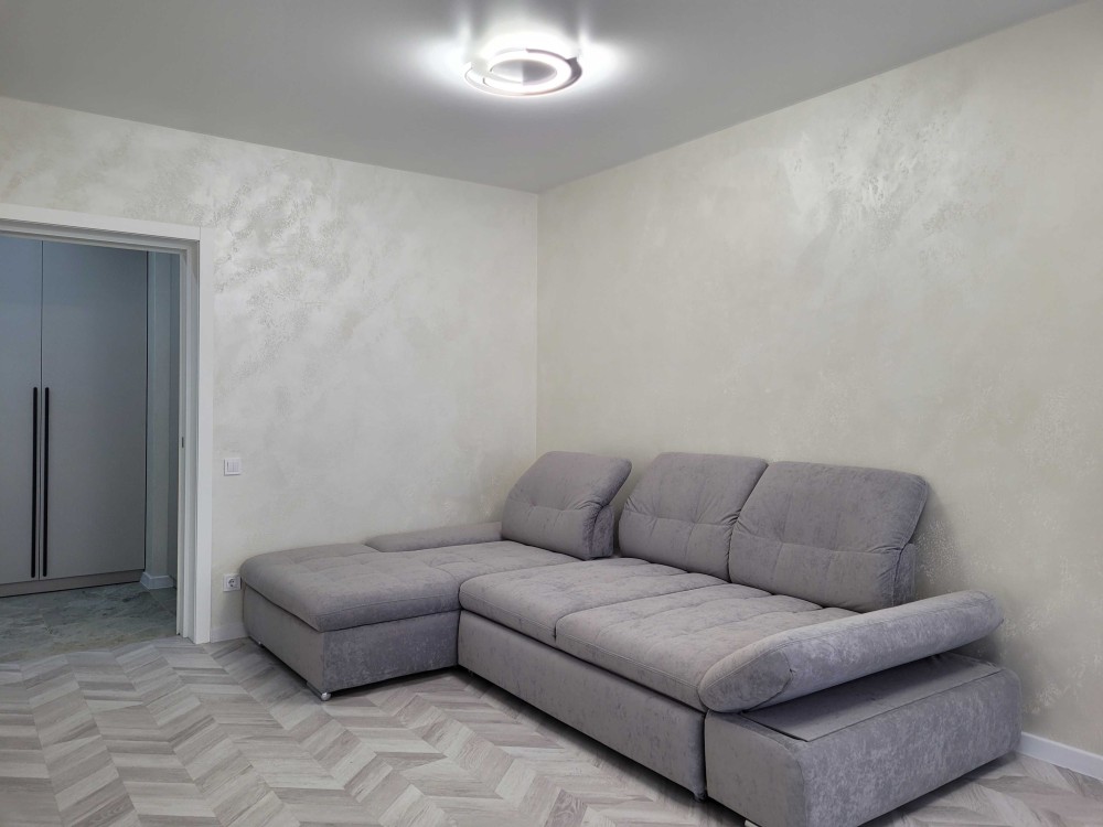 Квартира омебльована (вбудована кухня, диван, стіл, стільці, шафи-купе) та обставлена побутовою технікою (холодильник, посудомийна машина, мікрохвильовка, кондиціонер, пральна машина, бойлер).