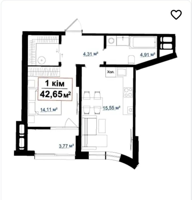 • Однокімнатна