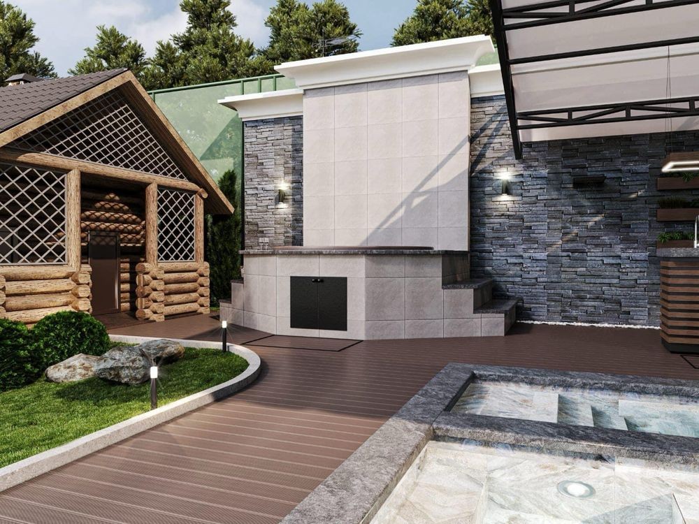 Гостевой дом: 374 м2- готовность 85%, дизайн проект гостевая комната, кухня, санузел, комната для охраны со всеми удобствами, второй этаж:система вентиляции, 4 комнаты, 2 санузла. Беседка с открытием окон- гармошка.