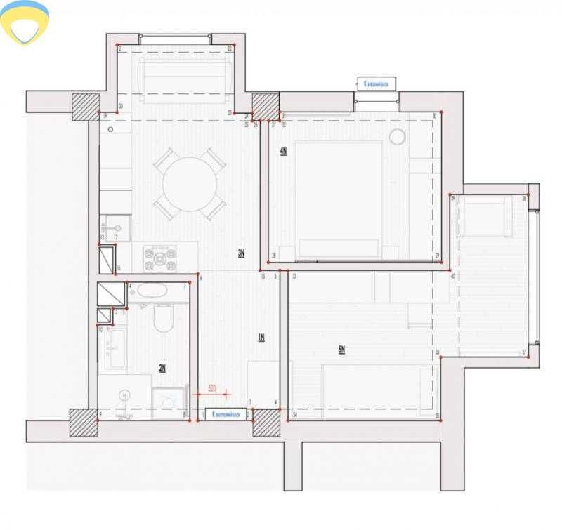 Планування великої 1-кімнатної (є готовий дизайн-проєкт перепланування на 2-кімнатну — можна зробити без проблем)