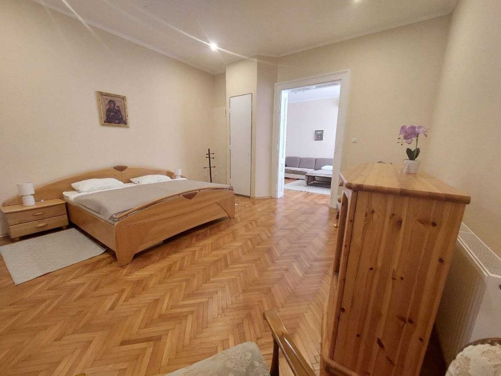 У квартирі сучасний ремонт, дві кімнати - прохідний зал і окрема спальня. Диван двоспальний, ліжко двоспальне. Є дві шафи, вся необхідна побутова техніка.