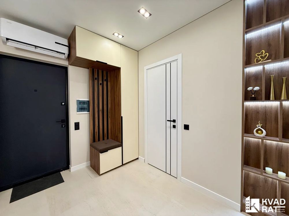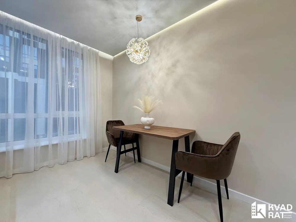 Квартира виконана у стильному сучасному ремонті з якісних матеріалів. Опалення індивідуальне газове, а в зонах з плиткою облаштована тепла підлога.