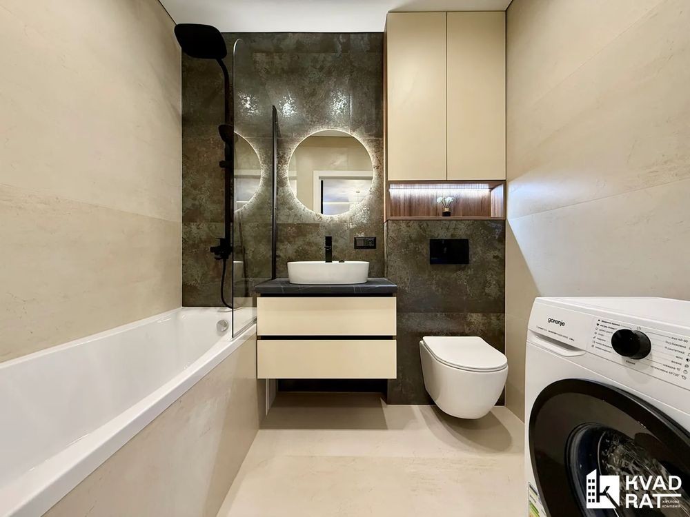 Великий санвузол обладнаний ванною з тропічним душем, інсталяцією з гігієнічним душем та вмонтованою пральною машиною. У передпокої розміщена зручна шафа для верхнього одягу та є кондиціонер.