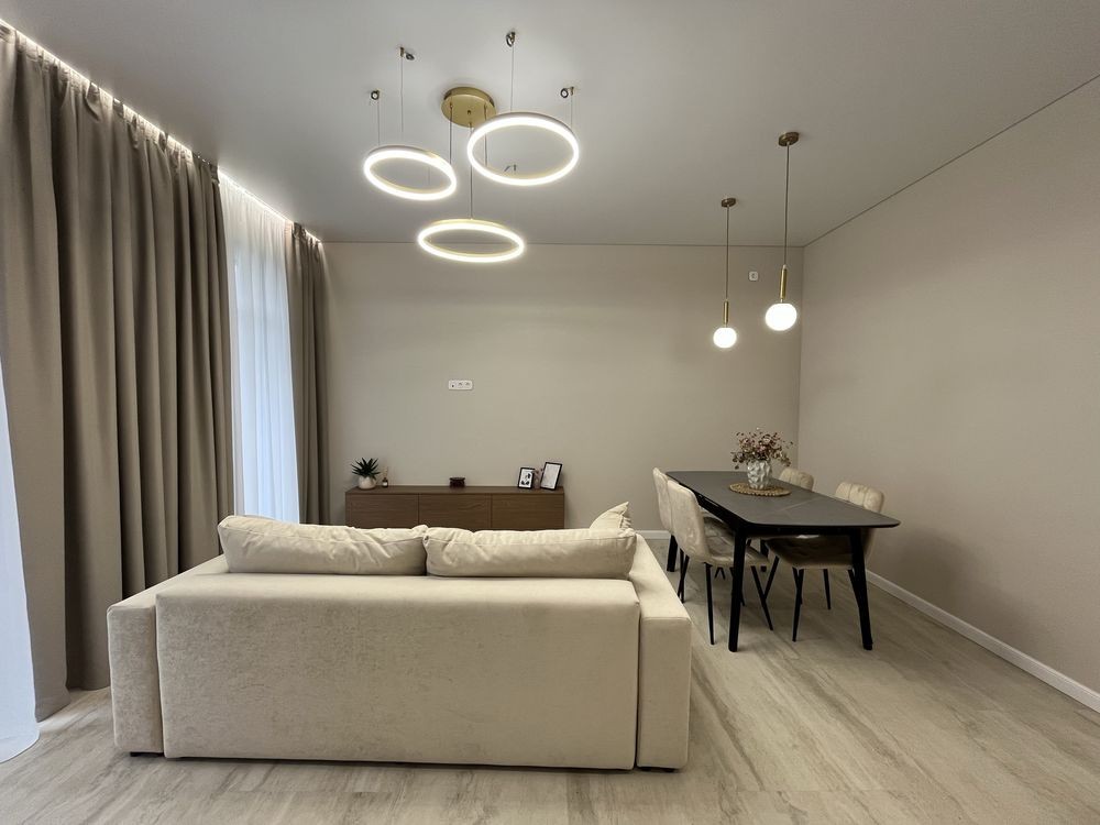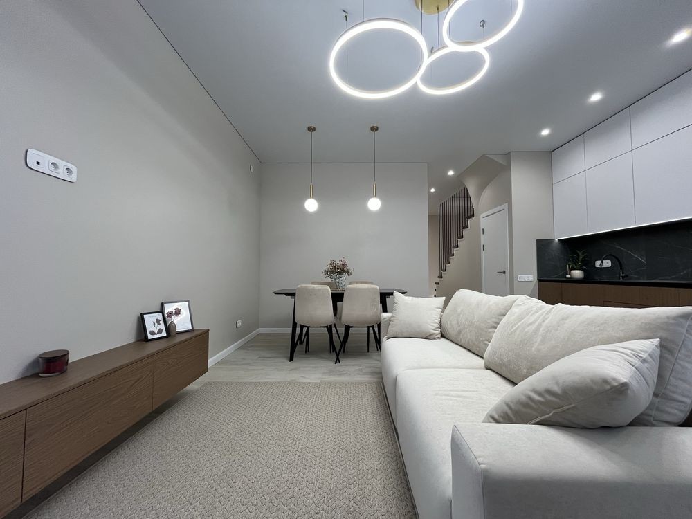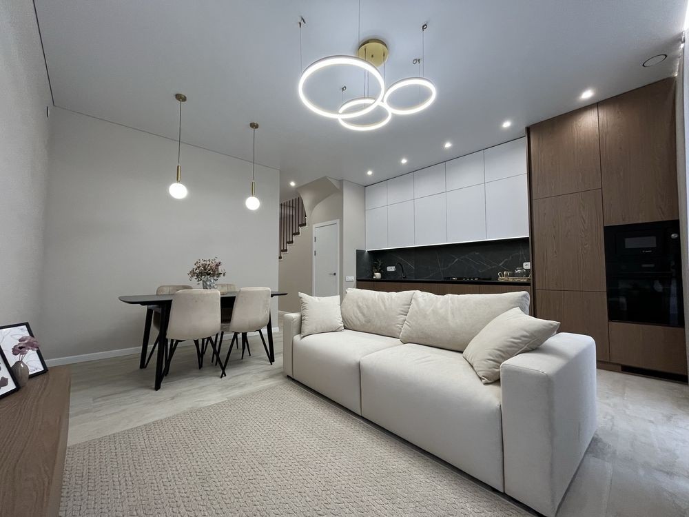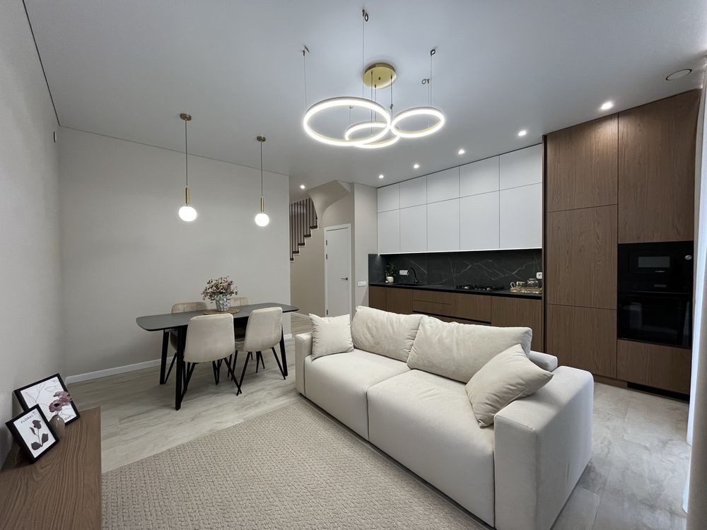 Велика кухня-студія з виходом на задній дворик , 4 кімнати , 2 санвузли, техприміщення.