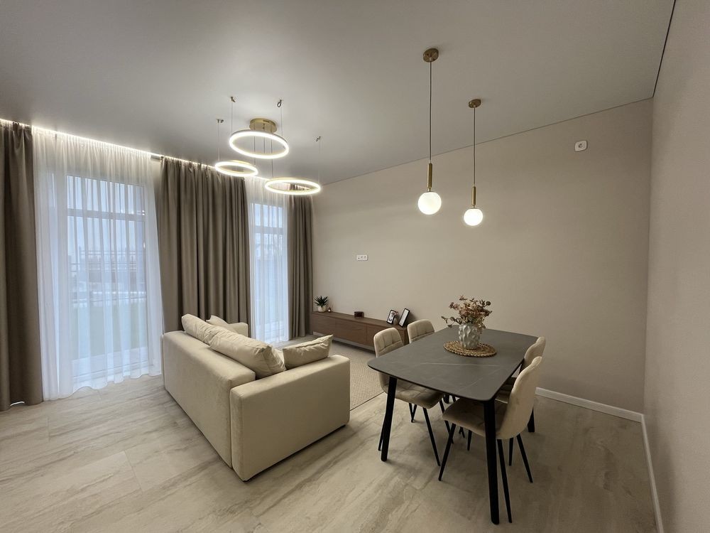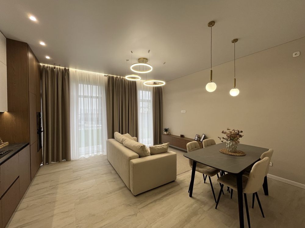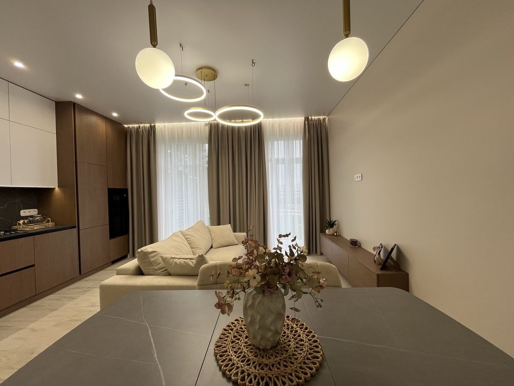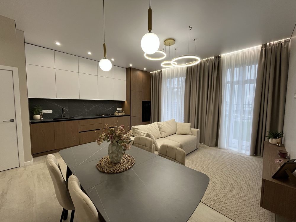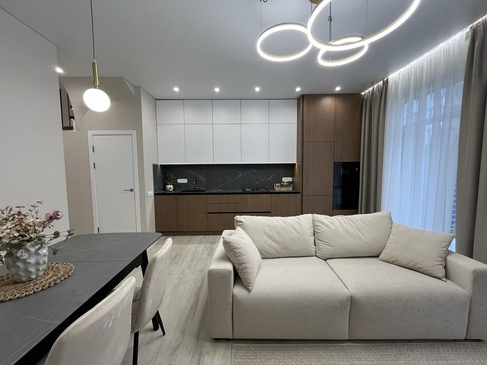 Мебльована кухня, вхідна група , майстер спальня і санвузли .