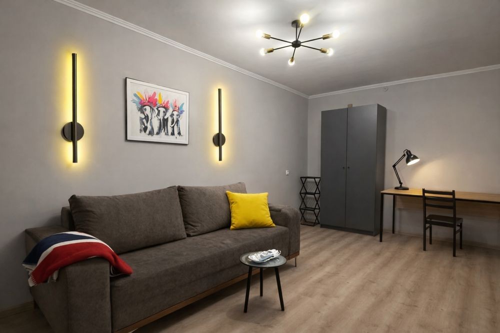 + Смарт TV 55Ø , диван розкладається, шафа , робоче місце - письмовий стіл