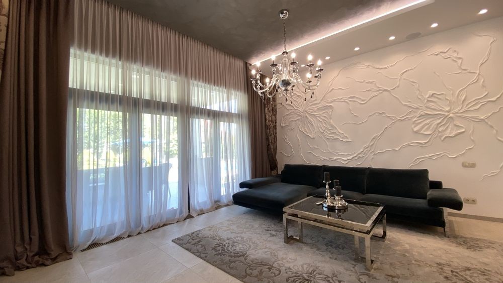 Изысканный интерьер с дорогой отделкой и атмосферой премиального уюта.