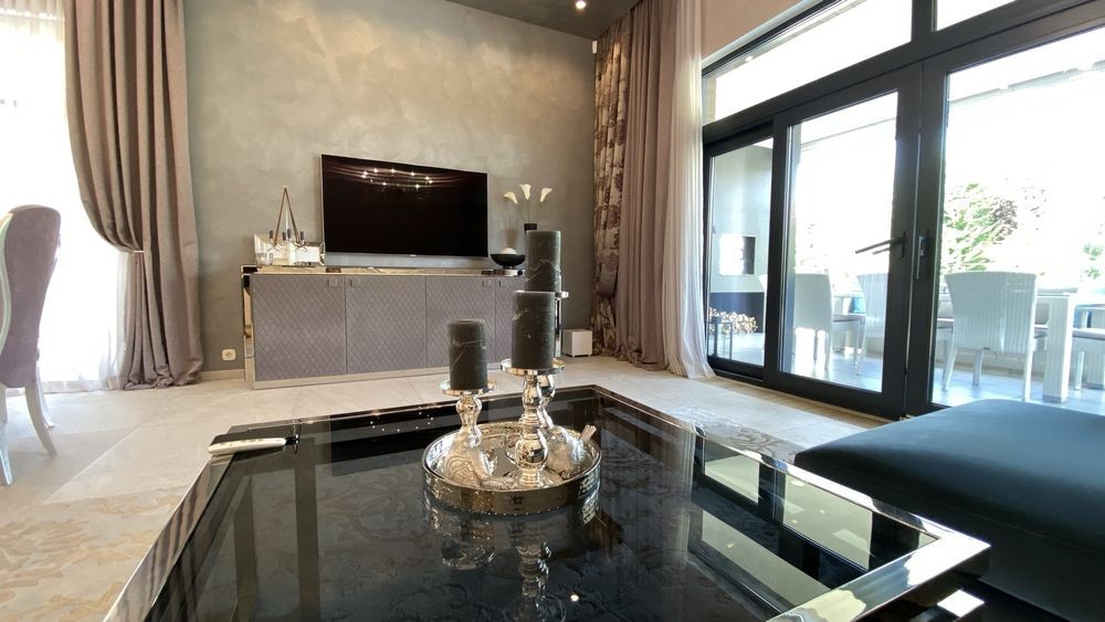 Гостиная с итальянской мебелью и электрической системой раздвижных штор производства Франция.