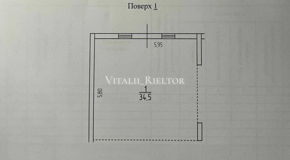 Свободная планировка, два входа, 34.5м2.