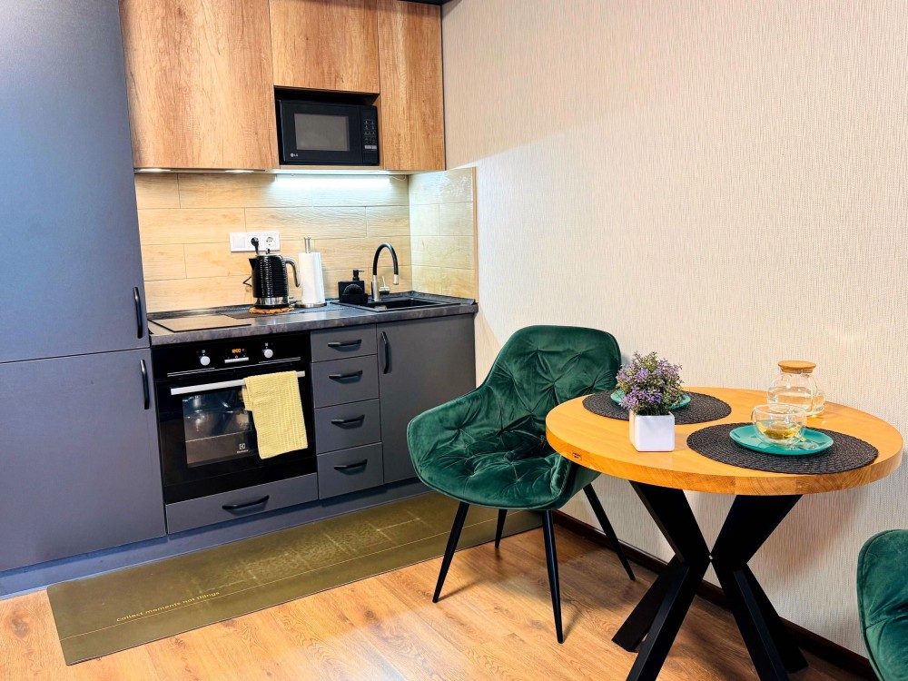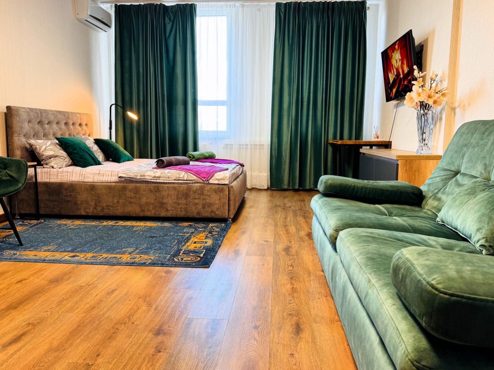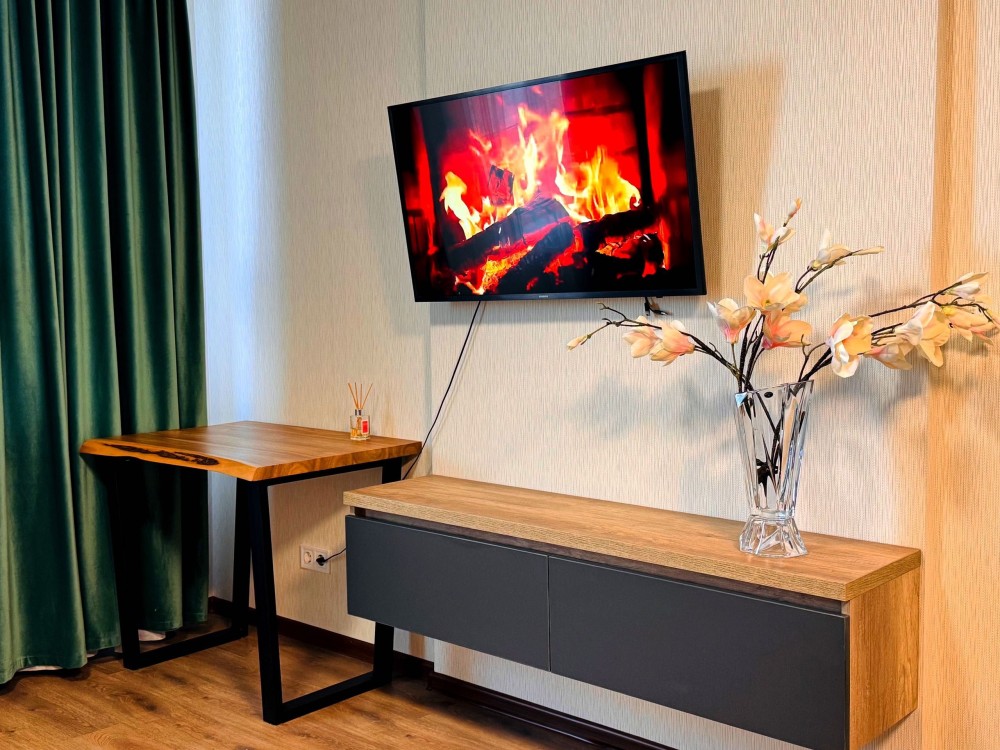 У квартирі є все необхідне для комфортного проживання: плазмовий смарт-телевізор, швидкісний інтернет, банні приналежності, чиста випрасувана постільна білизна. Для військових передбачена гнучка система знижок.