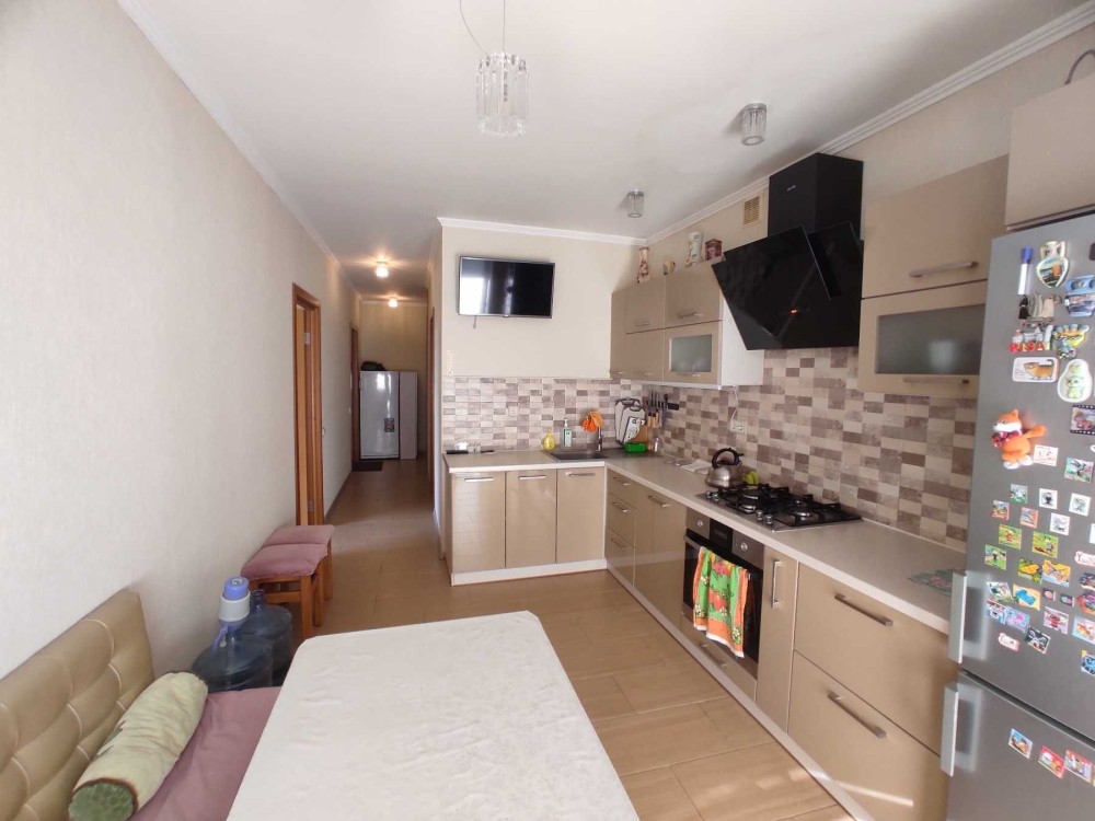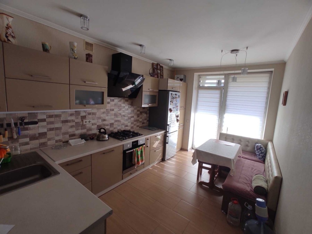 Квартира знаходиться на другому поверсі шестиповерхового утепленого будинку з ліфтом. Окремо кухня 12 кв. м. та дві кімнати - 17 та 13 кв.м. Є необхідний посуд, столові прибори, посудомийна машина, витяжка, холодильник та окремо додаткова морозильна камера. Газова варочна поверхня, яку можна використовувати при відсутності електрики. Ванна кімната разом з туалетом, великою ванною, душем, бойлером та пральною машиною, встановлені електричні теплі поли. Одна кімната з кондіционером. Великий балкон 10 кв.м. В коридорі встановлена велика шафа. Високошвідкісний інтернет та wifi. Оплата опалення за лічильником. Підвальне приміщення будинку використовується як бомбосховище. В пішій доступності гарний та затишний парк, магазини, пошта, та Rozetka. На території комплексу два дитячих майданчики.