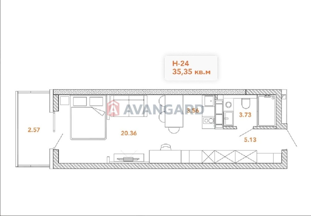 • Загальна площа 35 м2