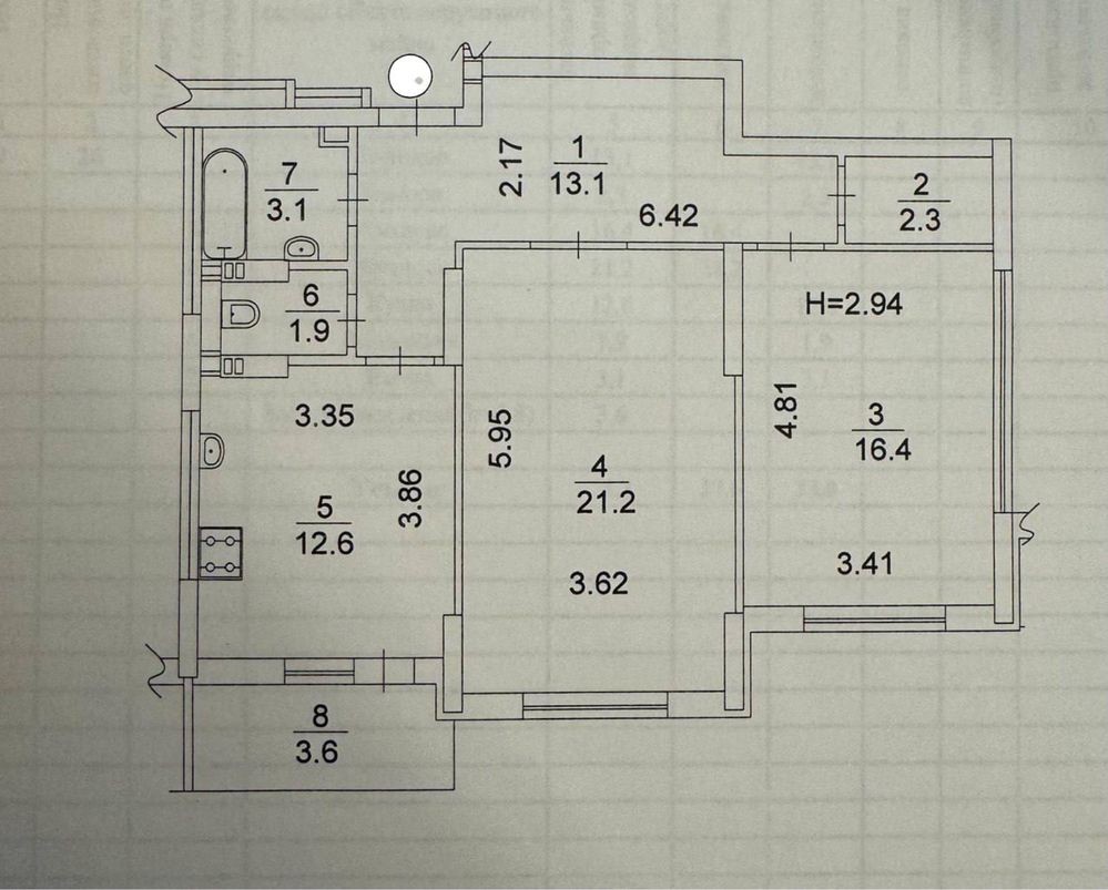 Двухкімнатна квартира загальною площею 73,1 м2