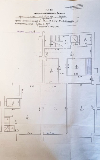 Вбудовано-прибудоване приміщення має перший поверх 375 м2 + повноцінний цоколь 374 м2.