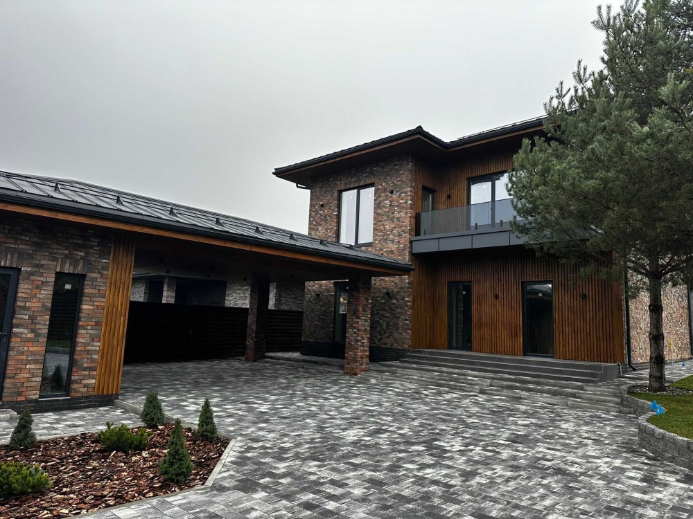 фасад облицювальна цегла та термодерево