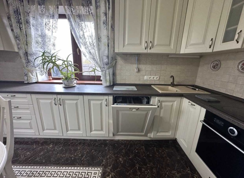 Кухня світла й функціональна, оснащена сучасною технікою та має приємний вид на подвір’я — простір, у якому хочеться готувати й проводити час разом.