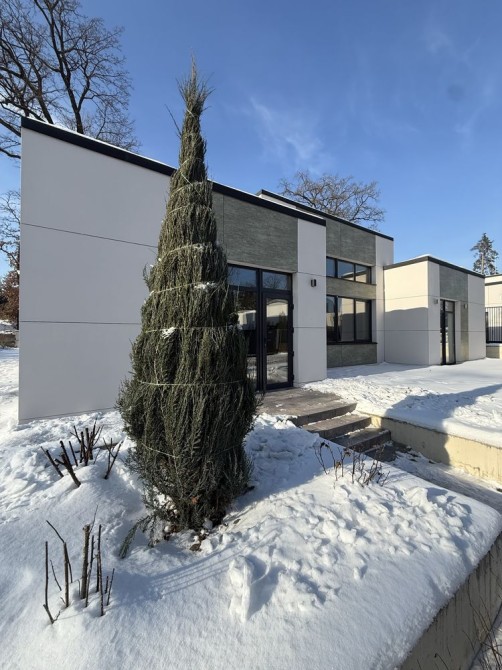 Просторий одноповерховий будинок на заключному етапі ремонту 172 кв.м з терасою 45 кв.м, на ділянці 8 соток, розташований на крайній вулиці села Лісники — безпосередньо біля лісу. До Печерська — 20 хвилин.