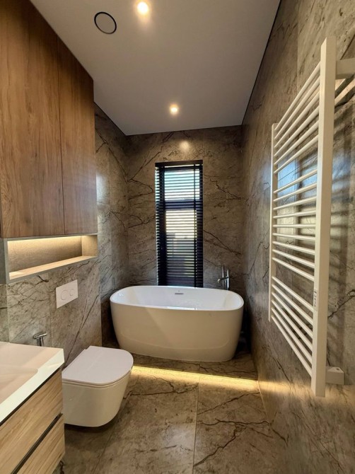 В будинку велика кухня з обідньою зоною і виходом на терасу, простора вітальня, три спальні master-bedroom, кожна з власним санвузлом, основна з великим гардеробом і виходом на терасу, окрема кімната/кабінет/гостьова, гостьовий санвузол, топочна/пральня.