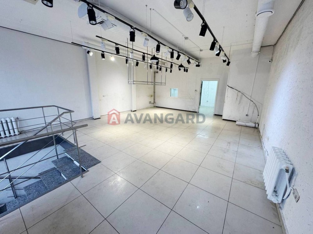 Помещение состоит из двух этажей по 100м.кв.Первый полуцокольный,второй полуторный (между первым и вторым)