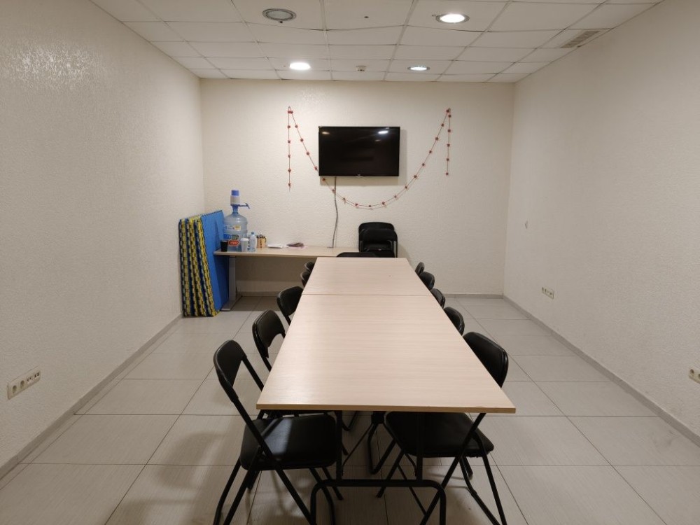 Возможности: столы 3 шт, стулья 25 шт, маты тренировочные 9 шт, телевизор, доступ Вай Фай, вода, вешалка, колонка, микрофон