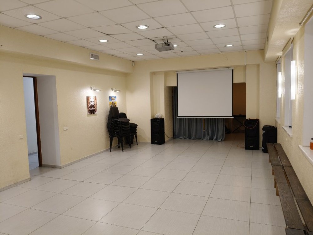 Возможности: проектор, экран, музыкальное оборудование, лавочки, стулья 40 шт, разноплановое световое решение, кондиционер, светомузыка, столы 4 шт, клавиши, возможность кофе брейк (чай кофе)