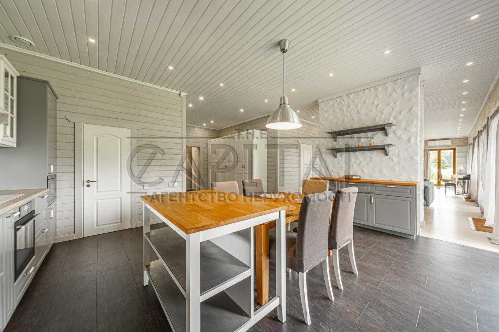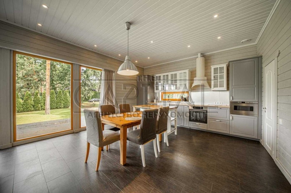 Терміновий продаж 2-о поверхового просторого і якісно-збудованого за індивідуальним архітектурним проектом, будинку площею 176 м² в с. Пухівка в Броварському р-ні. Будинок розташований в престижному закритому товаристві з охороною. Будинок побудований з червоної цегли, утеплений мінеральною ватою ватой ROCKWOLL 80 мм, фасад з цегли Фагот, кровля - фінська бітумна черепиця "katepal", двокамерні вікна "Века" з автоматичними захисними ролетами кольору золотий дуб, декоративна штукатурка, іспанская плитка, дуб паркет-дошка, імпортна сантехніка. Ділянка розміром 14 соток має правильну прямокутну форму, за проектом розміщено індивідуальний житловий 2-о поверховий будинок та гараж на 2 авто (53м2). Планування будинку забезпечує комфортне проживання великої родини. Планування: 5 спален, кухня, вітальня, 2 с/в. Якісний ремонт, дерев'яні меблі, кухонний гарнітур з натурального дубу. Під’їзд до будинка асфальтованою освітленою дорогою, глухий кут вулиці з виходом на піщаний пляж р. Десна, поруч ліс, озера, ресторан, магазин, зупинка громадського транспорту та бази відпочинку. Живописне, красиве місце, чисте повітря, для постійного проживання, все навколо забудовано. Інженерія та комунікації: Електрика — Виділена лінія електроенергії на 20кВт. • Газовый двоконтурний котел • Електрокотел • Діючий камін • Бойлер • Система очищення води • Кондиціонери • Підключено інтернет • Автоматичні ролети на вікнах. • Скважина • Каналізація — два переливні дренажні септики • Автополив • Сигналізація та відеоспостереження • Автоматичні ворота. Будинок продається з меблями та технікою. 225000 у. о. Можливий торг!