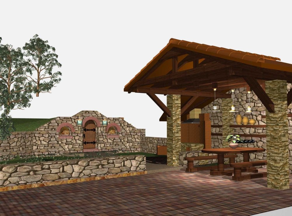 Гостьовий будинок зведений із пустотілої цегли з базальтовим утепленням та має бетонне перекриття.