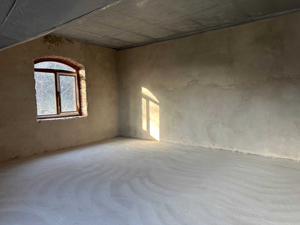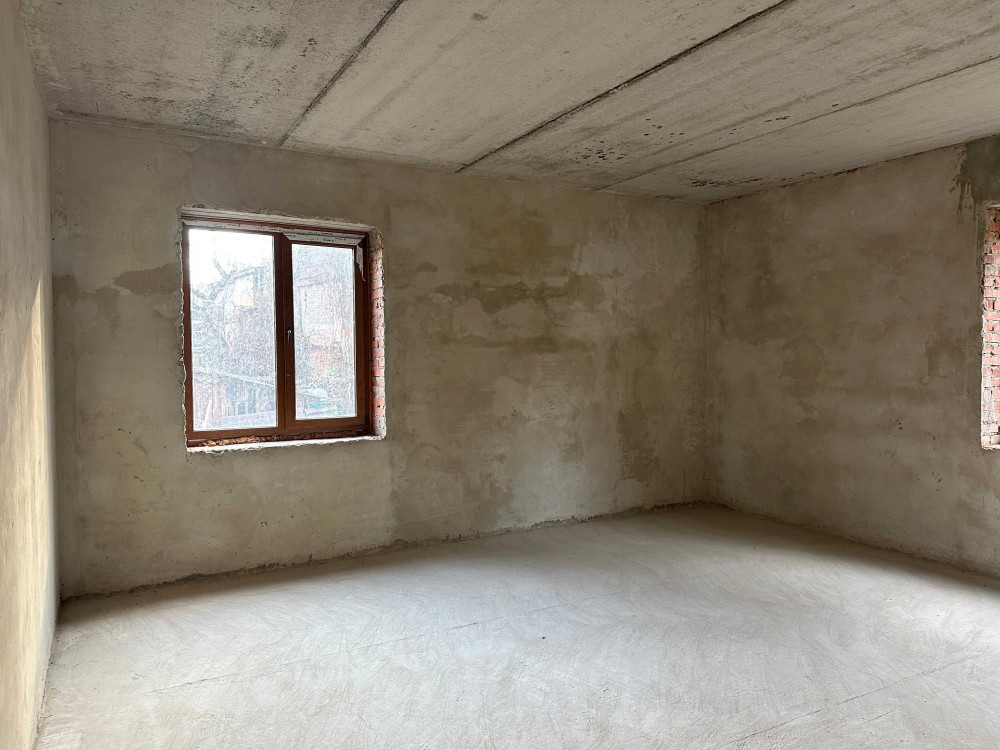 Стан будинку – після будівельників, зроблена стяжка підлоги, стіни – оштукатурені.