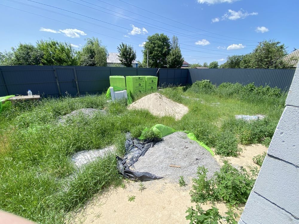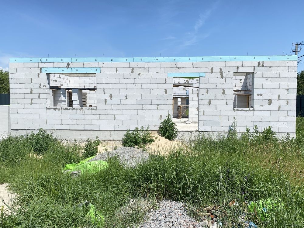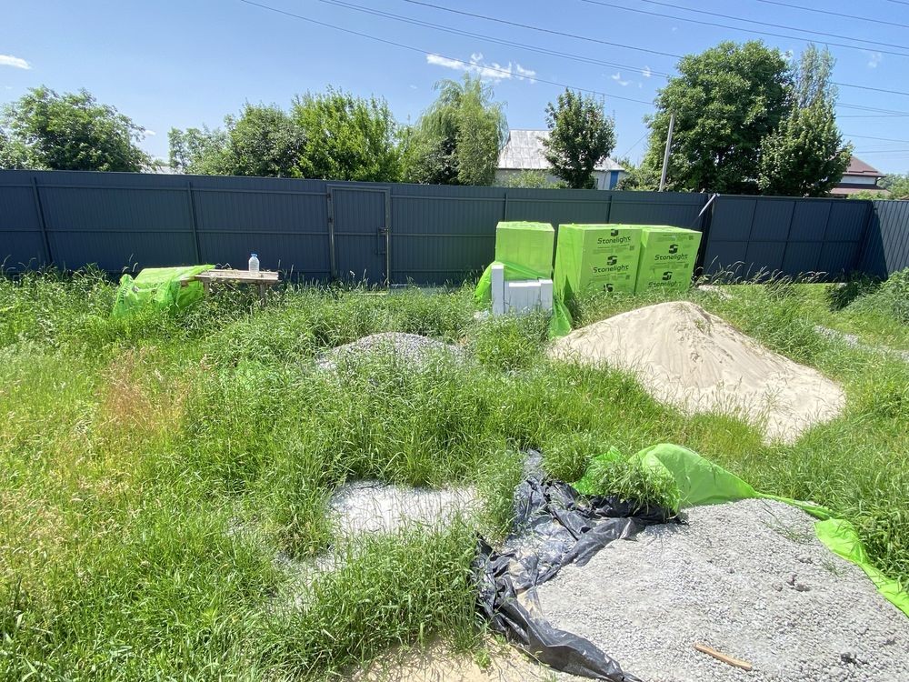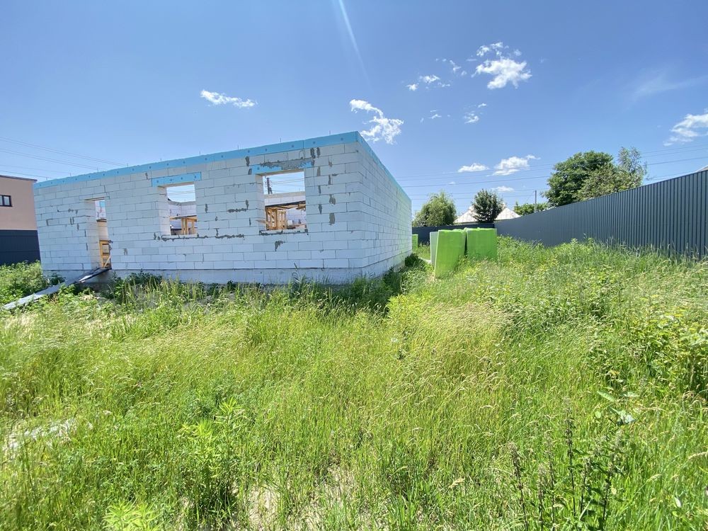 В селі є пошта, магазини, школа, підприємства - велике живе село. Ділянка приватизована під забудову (є кадастровий номер) , 11 соток, кутова, 23м х 44м по фасаду, паркан з металопрофілю на фундаменті. Проект будинку узгоджений, одноповерховий 120м2 за планом. В 2024 залитий фундамент та побудовано перший поверх з газоблоку, не перекрито, готові 2 септики з переливом.