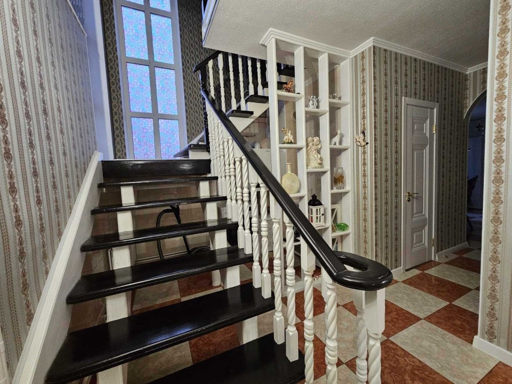 Мальованка. Домоволодіння складається з двох частин. Рельєфна земельна ділянка майстерно обіграна ландшафтним дизайном, з двору відкривається чудовий краєвид. Окремий двір з двома заїздами. Величезний гараж на другому поверсі якого спортивний зал з різними тренажерами та ще додатковими кімнатами.