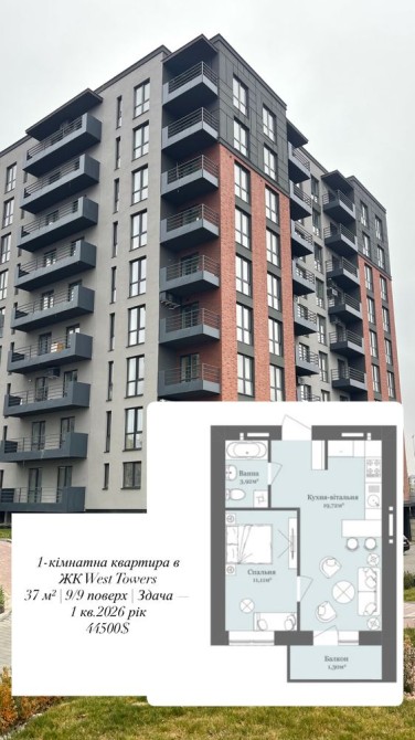 Продається 1 кім.квартира у  ЖК West Towers - фото 1