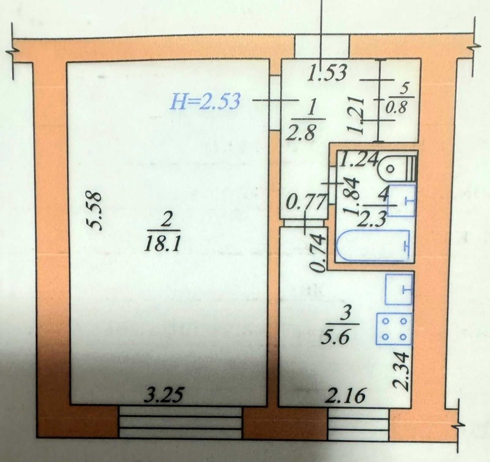 • Площа кухні 5.6 м2