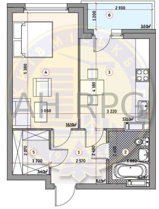 • Загальна площа 42.9 м2
