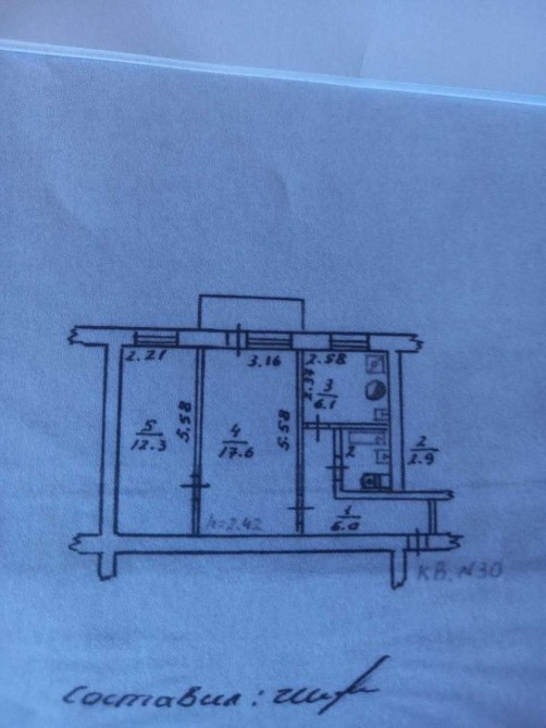 • Площа кухні 2.58 м2